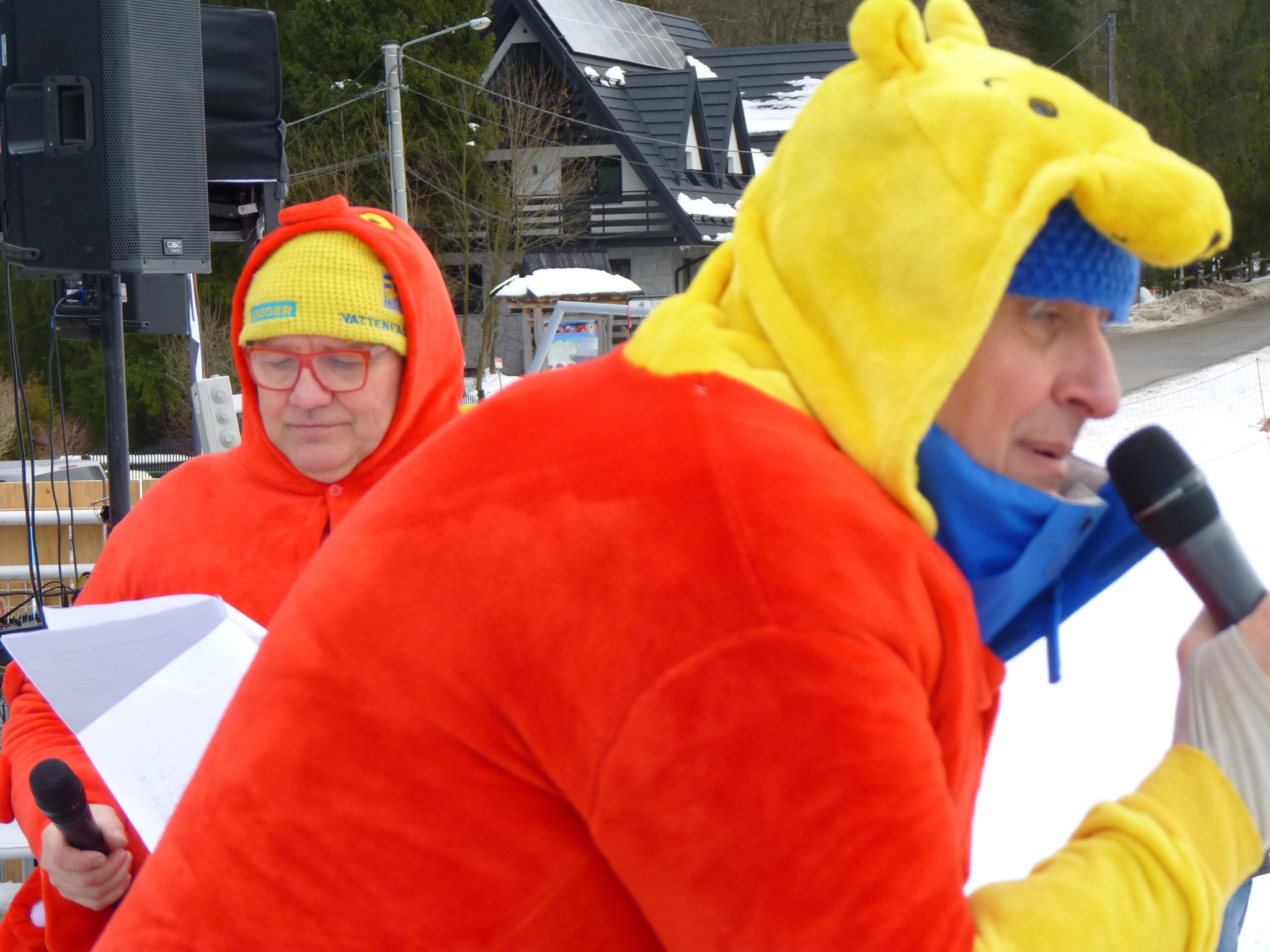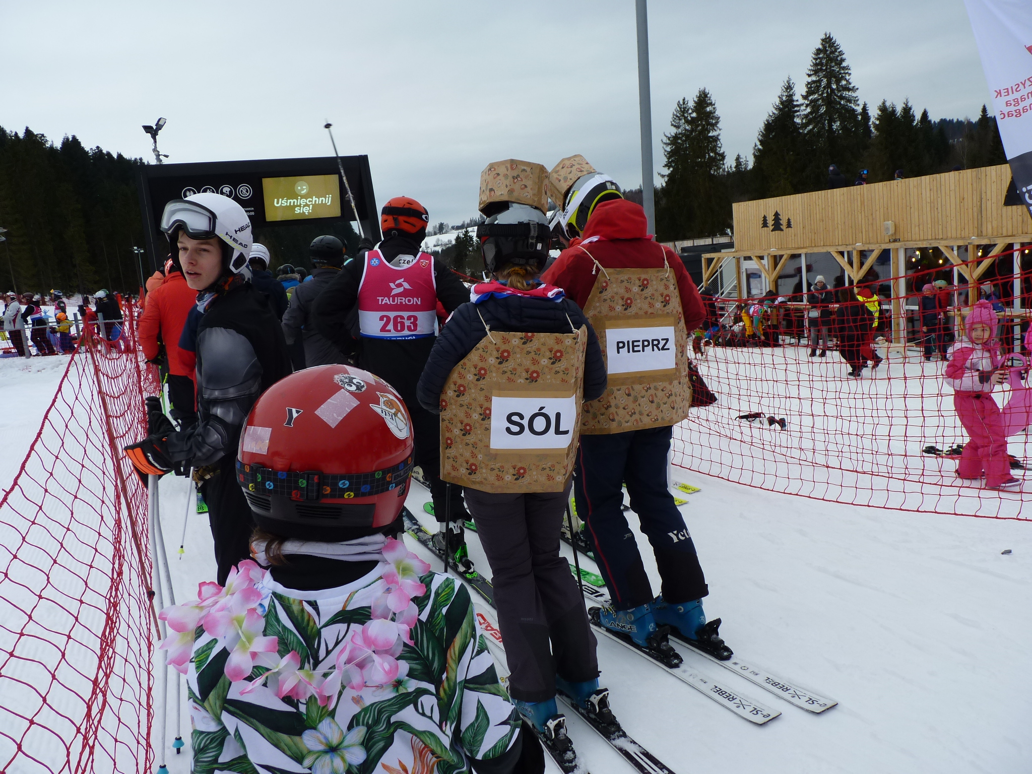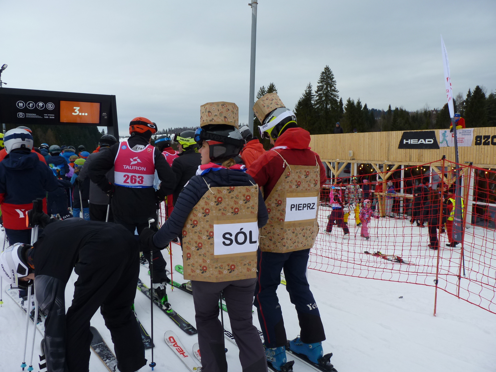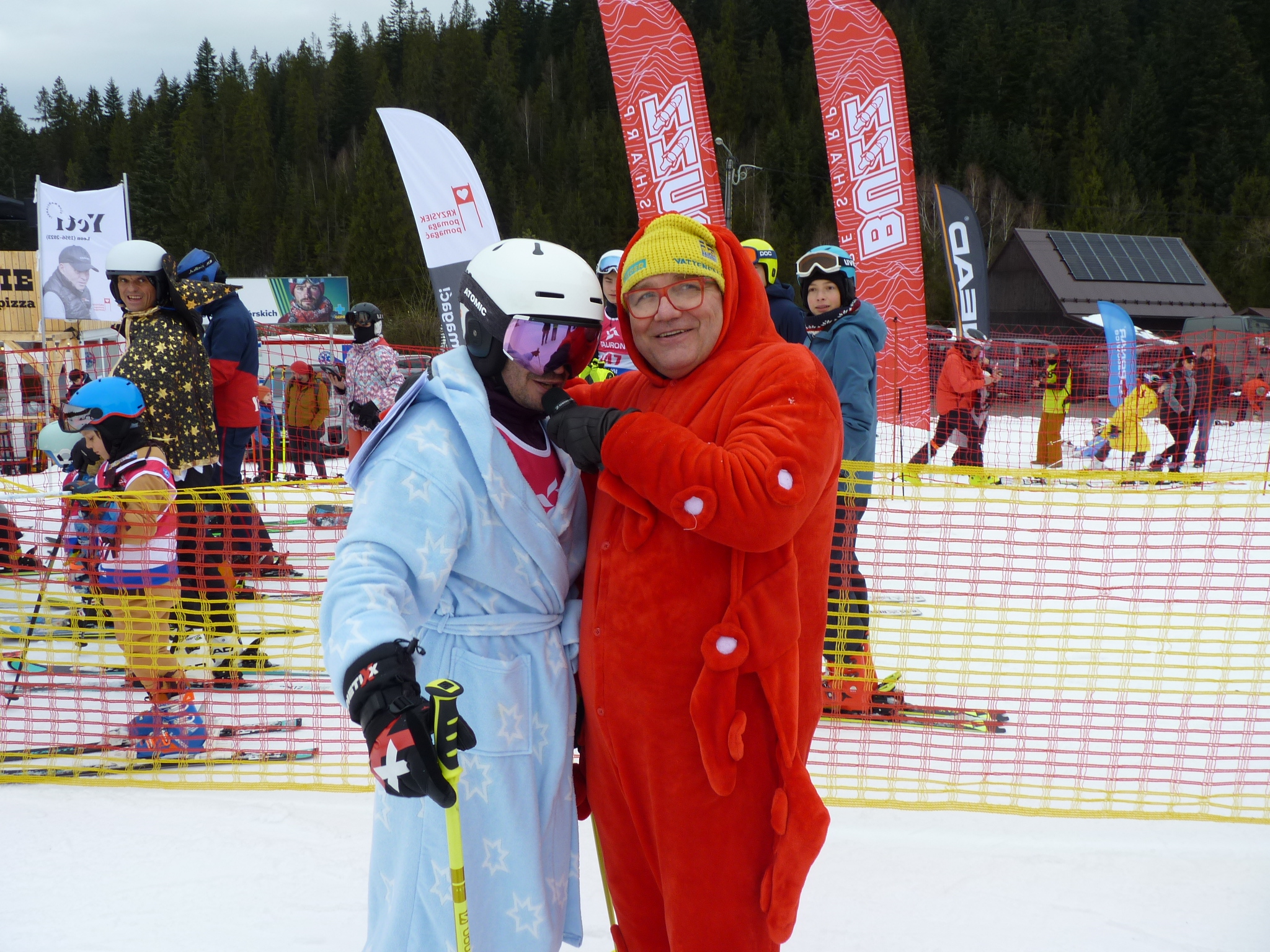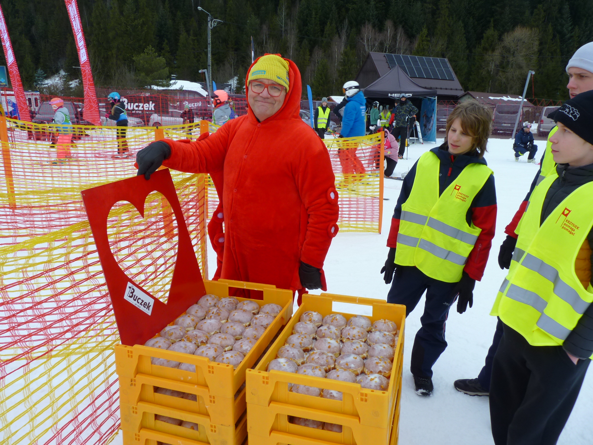 Było gwarno, kolorowo i smacznie. Gwarno, bo na Długiej Polanie, spotkało się wiele osób, które się wzajemnie znają i lubią. Kolorowo, bo wielu uczestników slalomu-giganta wystąpiło w fantazyjnych przebraniach. Smacznie, bo można się było posilić bigosem ufundowanym przez Małopolski Okręgowy Związek Narciarski oraz pączkami ufundowanymi przez piekarnię Buczek. Oczywiście finansowych i barterowych partnerów było więcej, o czym pisaliśmy szczegółowo tutaj (wpis z 21 stycznia 2026).