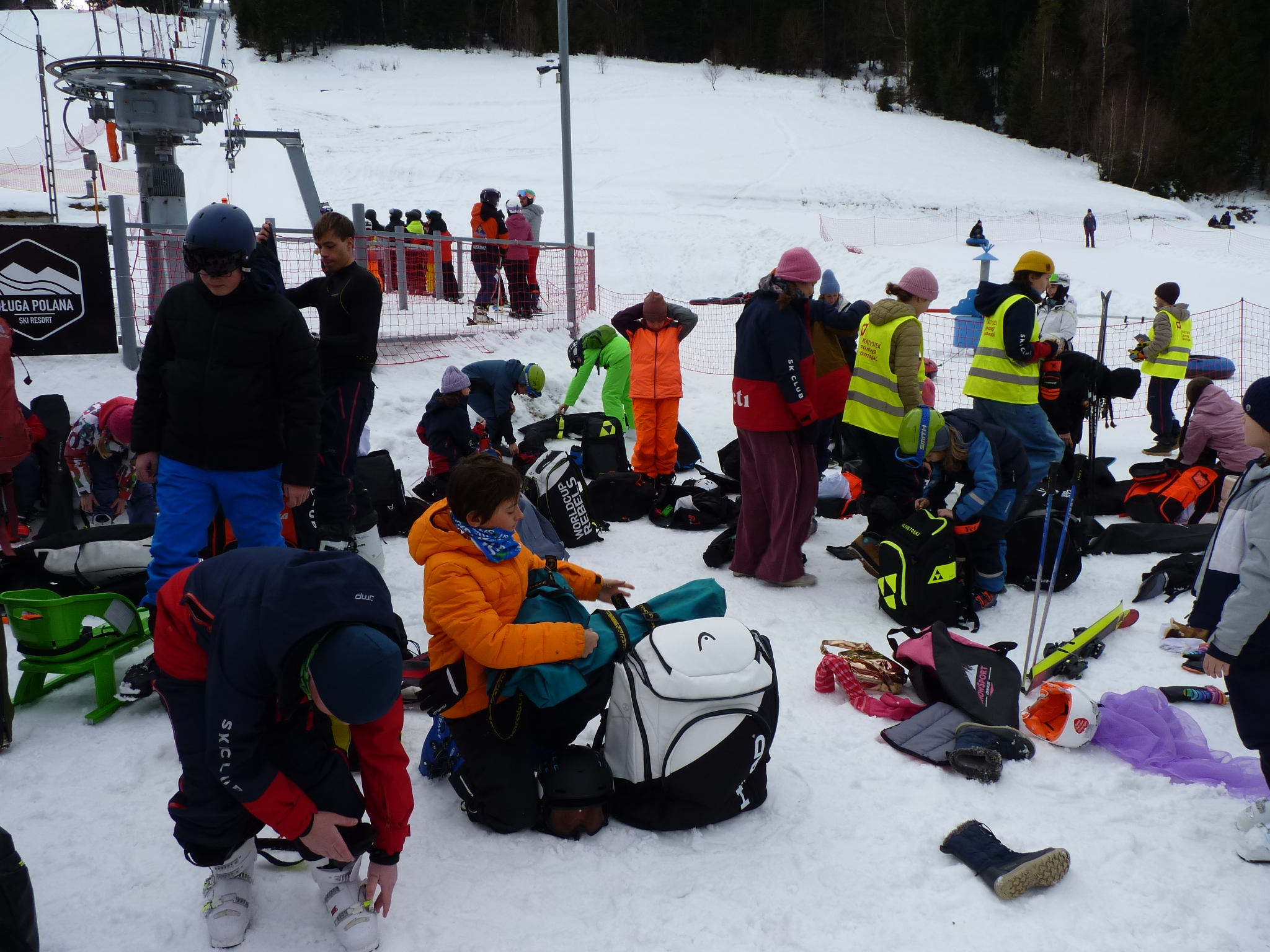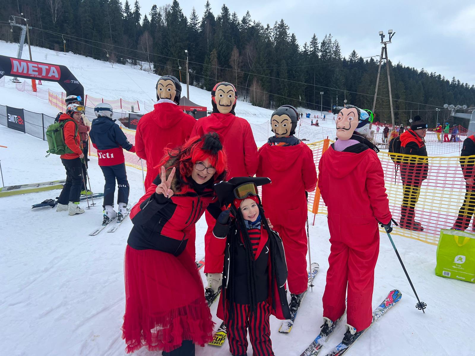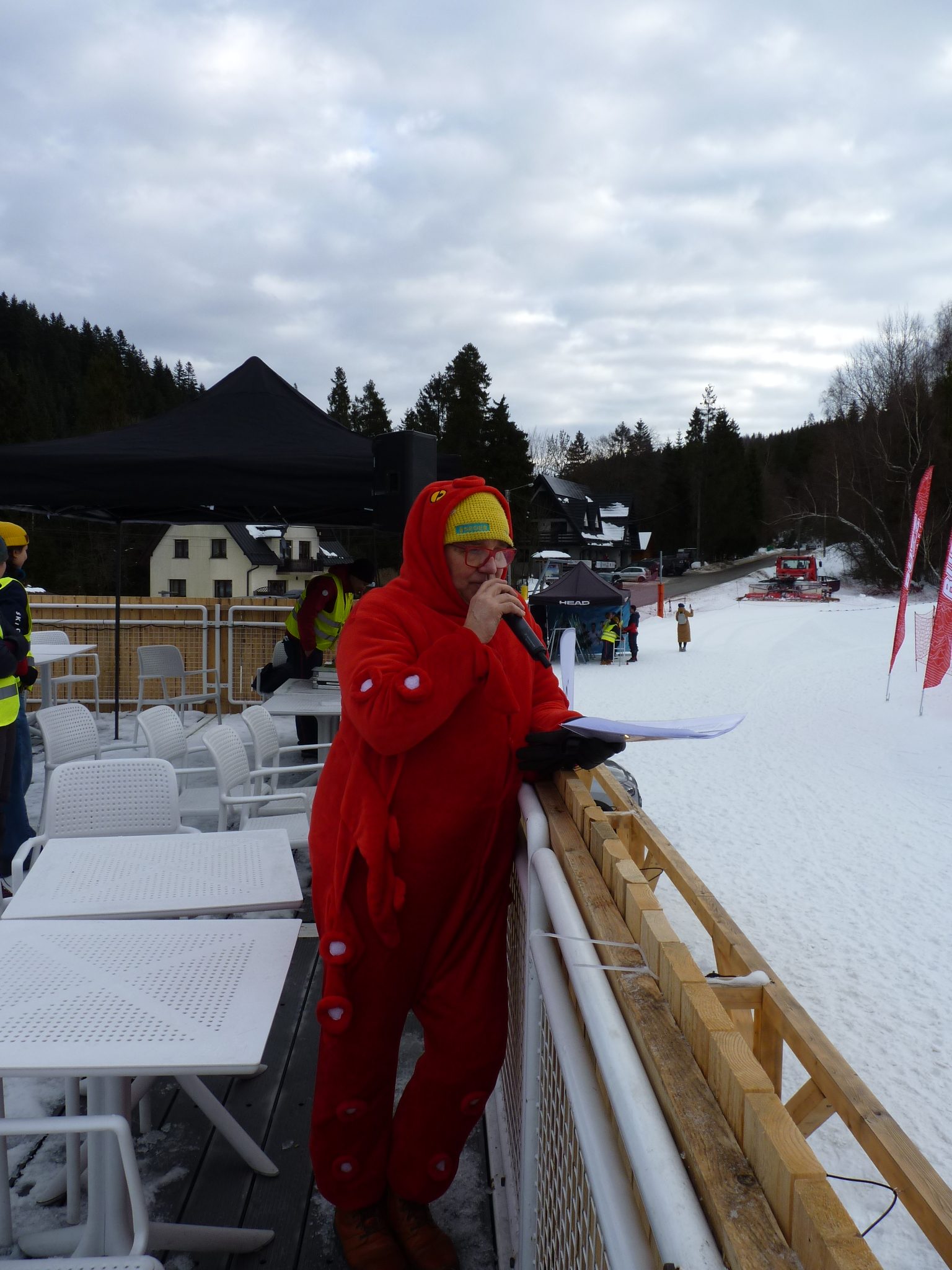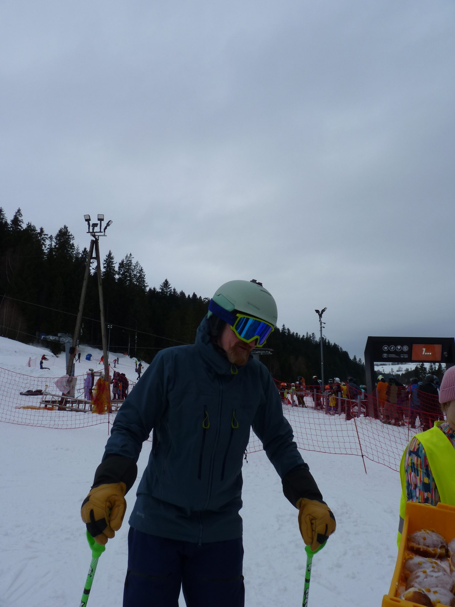 Było gwarno, kolorowo i smacznie. Gwarno, bo na Długiej Polanie, spotkało się wiele osób, które się wzajemnie znają i lubią. Kolorowo, bo wielu uczestników slalomu-giganta wystąpiło w fantazyjnych przebraniach. Smacznie, bo można się było posilić bigosem ufundowanym przez Małopolski Okręgowy Związek Narciarski oraz pączkami ufundowanymi przez piekarnię Buczek. Oczywiście finansowych i barterowych partnerów było więcej, o czym pisaliśmy szczegółowo tutaj (wpis z 21 stycznia 2026).