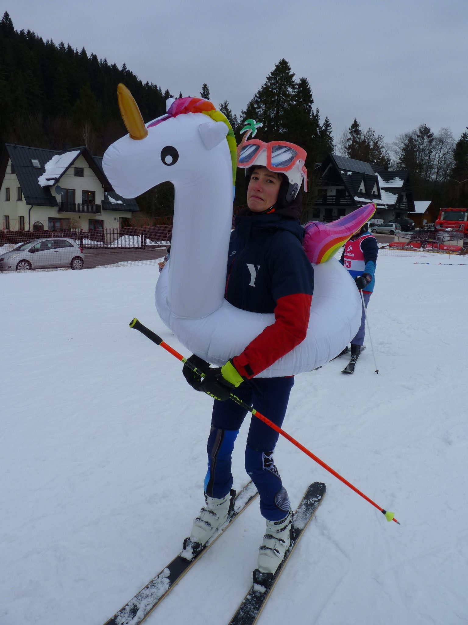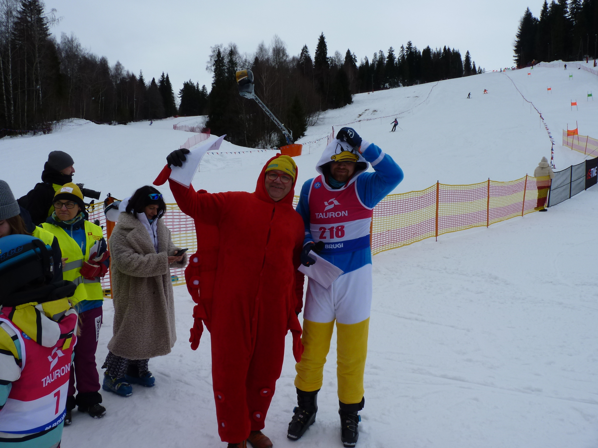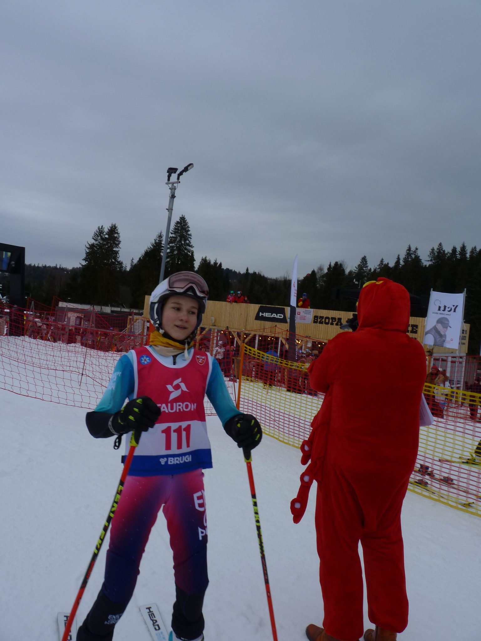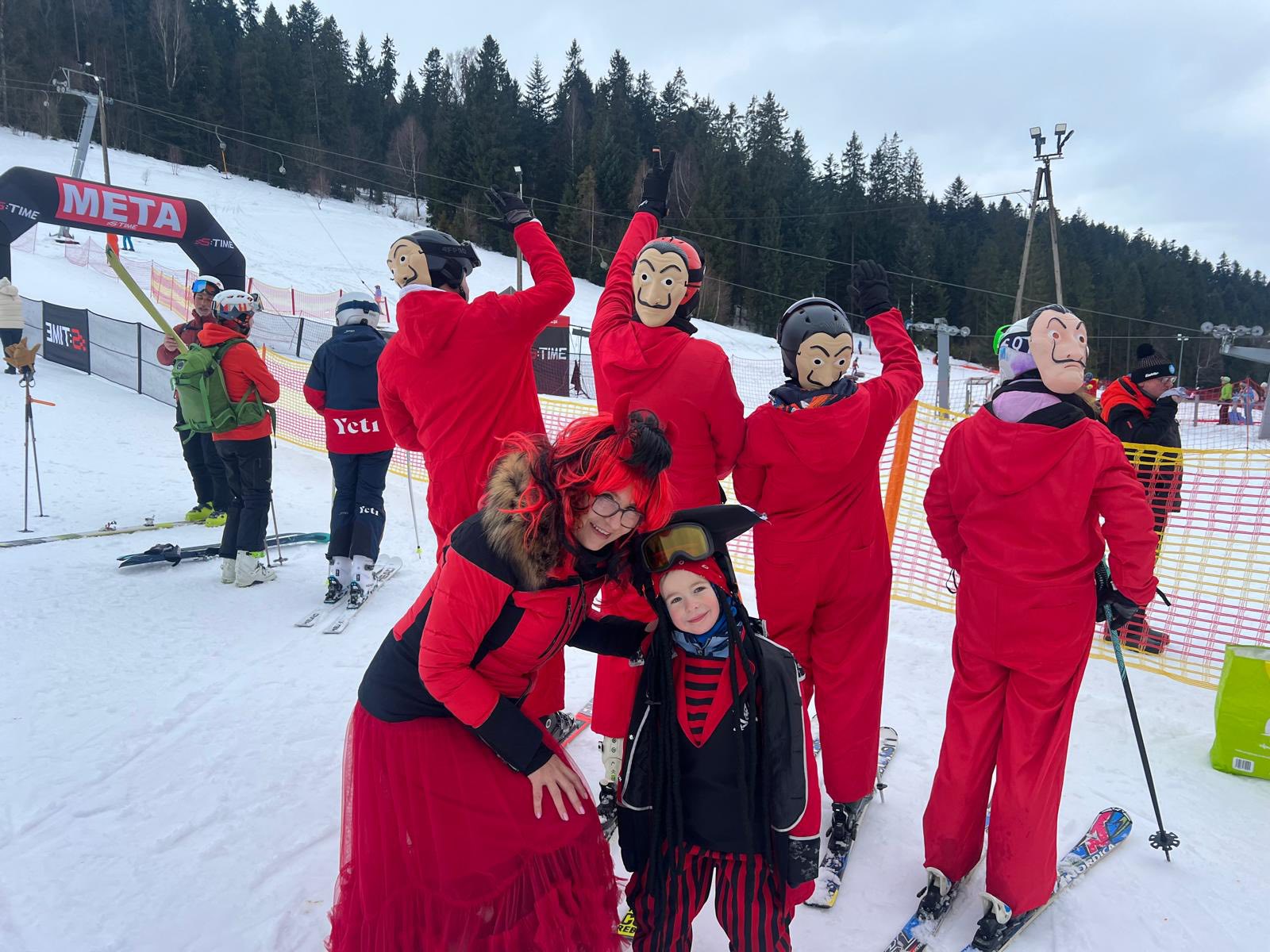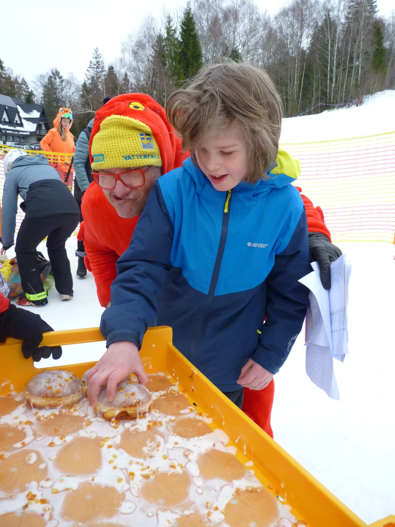 Było gwarno, kolorowo i smacznie. Gwarno, bo na Długiej Polanie, spotkało się wiele osób, które się wzajemnie znają i lubią. Kolorowo, bo wielu uczestników slalomu-giganta wystąpiło w fantazyjnych przebraniach. Smacznie, bo można się było posilić bigosem ufundowanym przez Małopolski Okręgowy Związek Narciarski oraz pączkami ufundowanymi przez piekarnię Buczek. Oczywiście finansowych i barterowych partnerów było więcej, o czym pisaliśmy szczegółowo tutaj (wpis z 21 stycznia 2026).