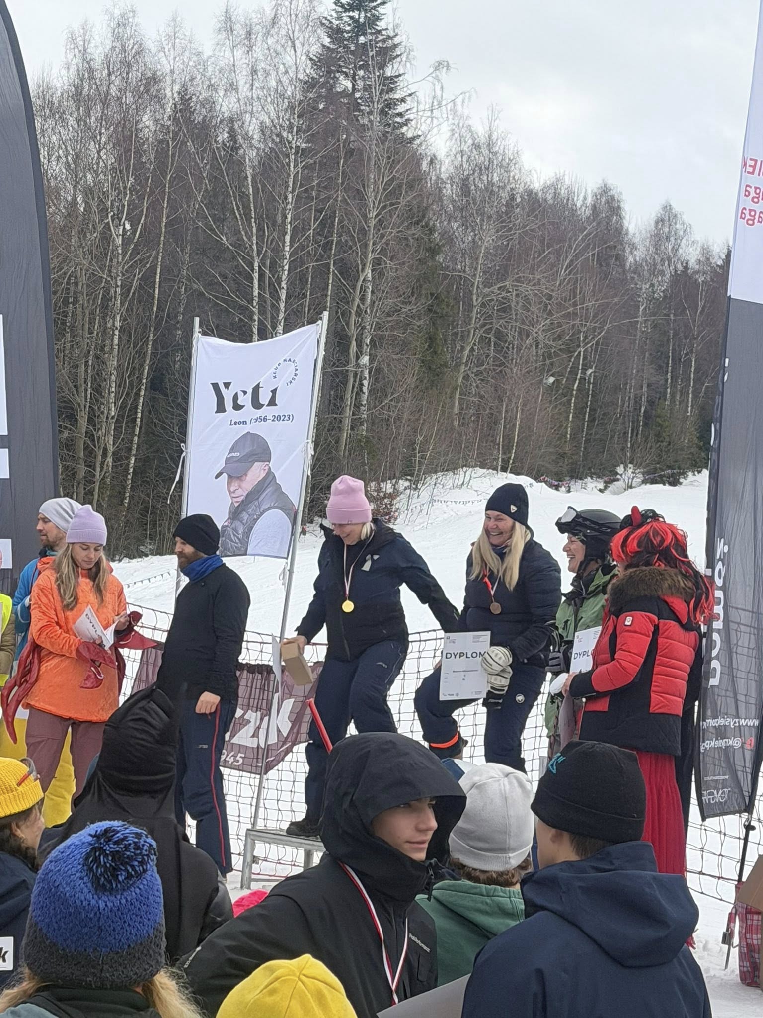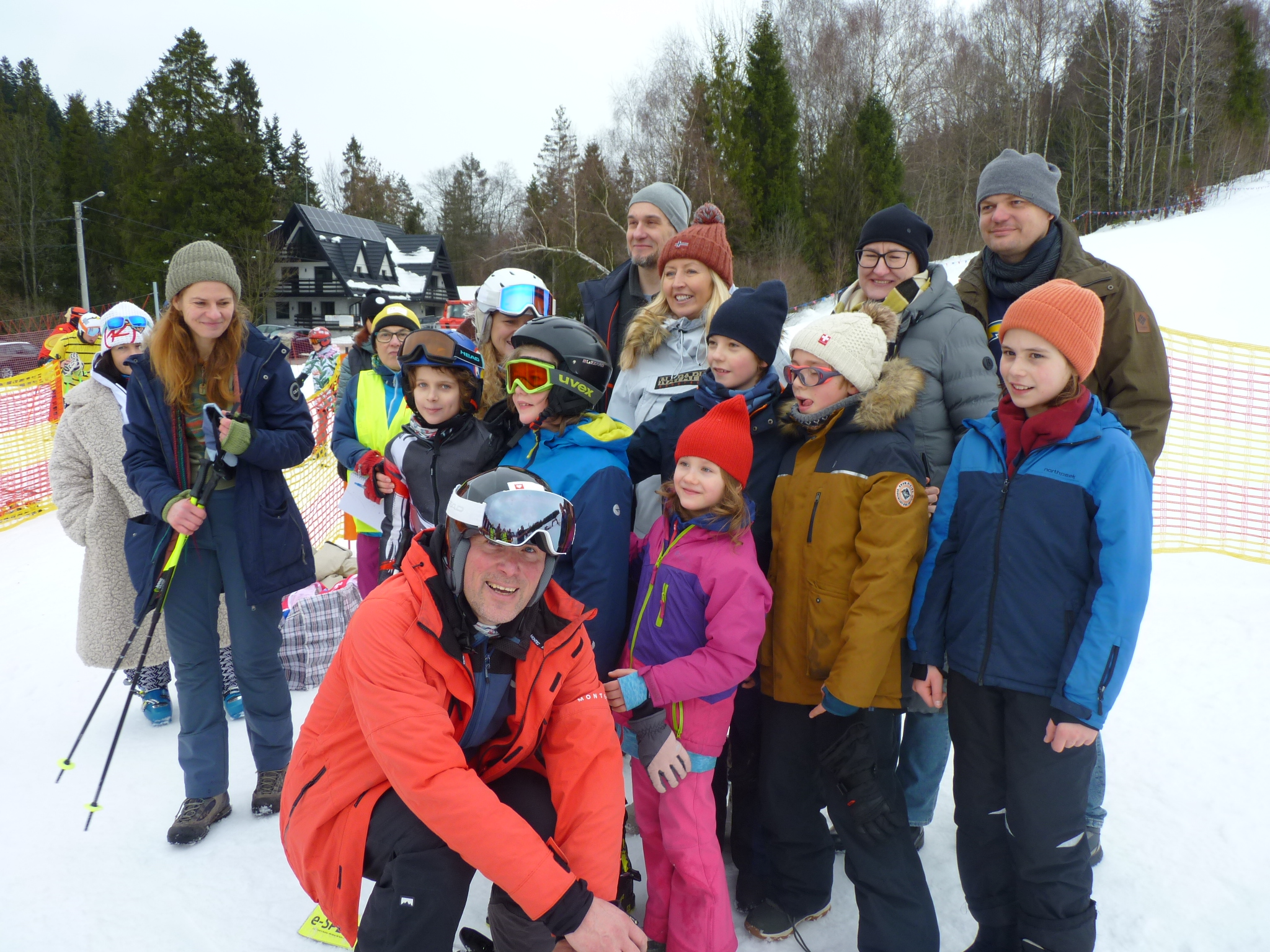 Była też z nami pamięć o Leonie, którego wizerunek spoglądał na nas z flagi obok flag naszego Stowarzyszenia. Bo trzeba wiedzieć (starsi to wiedzą, a młodsi niech zapamiętają), że bez Leona nasze Stowarzyszenie w ogóle by nie powstało. I trzeba wiedzieć (zastrzeżenia jak powyżej), że w tym roku mija 20-ta rocznica pierwszych zawodów organizowanych przez Małopolski Okręgowy Związek Narciarski – dziękujemy Maciejowi Trzcińskiemu! – najpierw (w latach 2006 – 2011) w formule „Zawody dla Krzysia”, a potem (od r. 2012) w formule dla każdorocznych beneficjentów Stowarzyszenia „Krzysiek Pomaga Pomagać”.